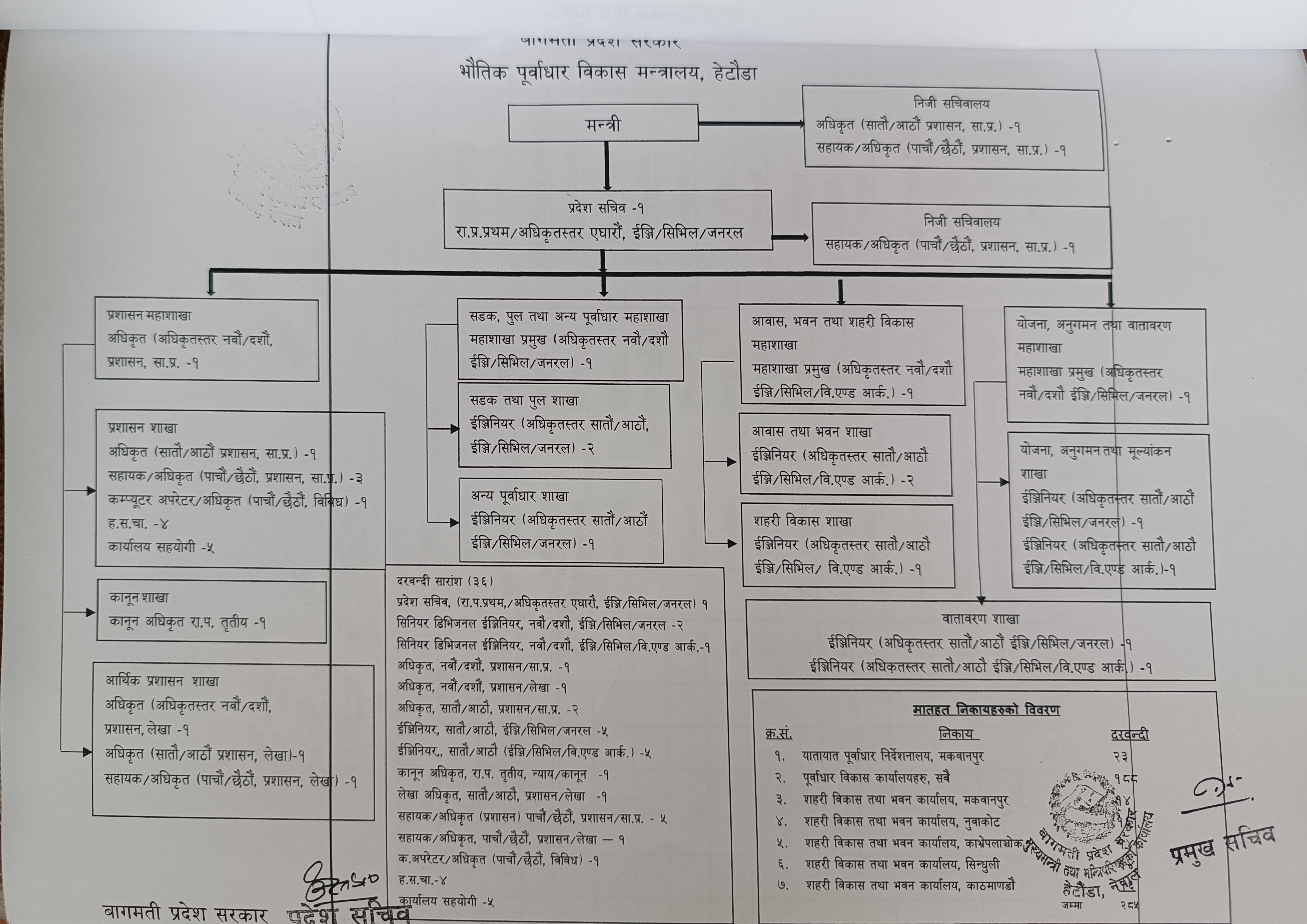 सङ्गठनात्मक ढाँचा मन्त्रालय तथा मातहत सवै